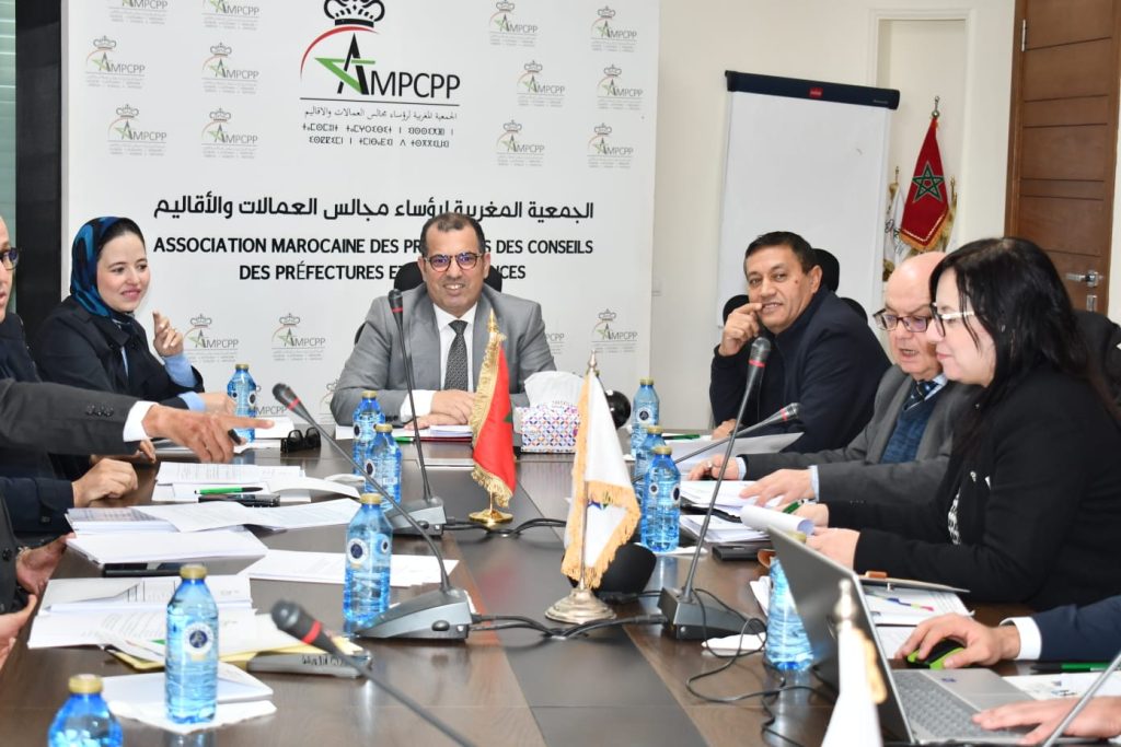 عقد يوم الاثنين 16 فبراير 2026 بمقر الجمعية المغربية لرؤساء مجالس العمالات والأقاليم اجتماع المكتب التنفيذي للجمعية وقد ترأس هذا الاجتماع السيد عبد العزيز الدرويش، رئيس الجمعية المغربية لرؤساء مجالس العمالات والأقاليم وحضره حضوريا نواب الرئيس السيدة اعتماد الزهيدي والسيد إبراهيم بنصبيح وأمين مال الجمعية السيد محمد أوسار وأطر الجمعية وعن بعد السادة لحسن زلمط، محمد جلول، الشيخ بلا و لحسن بلفقيه، نواب الرئيس.
