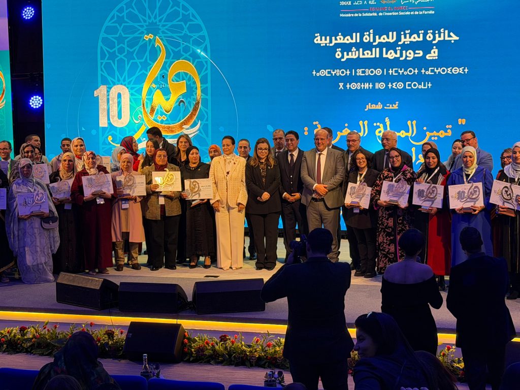 تحت الرعاية السامية لصاحب الجلالة الملك محمد السادس نصره الله، نظمت وزارة التضامن والإدماج الاجتماعي والأسرة فعاليات الدورة العاشرة لجائزة تميز المرأة المغربية تحت شعار: تميز المرأة المغربية إبداع وريادة، يومه الاثنين 15 دجنبر 2025 بنادي بنك المغرب بالرباط حيث حضر السيد عبد العزيز الدرويش رئيس الجمعية المغربية لرؤساء مجالس العمالات والأقاليم هذا اللقاء المتميز الذي يهدف إلى الاعتراف بالمبادرات المتميزة التي تتسم بالإبداع و التطوير و الجودة واحترام المقتضبات البيئية كما تساهم في النهوض بأوضاع المرأة المغربية وتعزيز مشاركتها الفاعلة في مسار التنمية المستدامة كما تساهم في النهوض بأوضاع المرأة المغربية وتعزيز مشاركتها الفاعلة في مسار التنمية المستدامة. . وقد ترأست الجلسة الإفتتاحية لهذه الجائزة السيدة نعيمة بن يحيى وزيرة التضامن والإدماج الاجتماعي والأسرة وعرفت حضور كاتب الدولة لدى وزير الصناعة والتجارة، المكلف بالتجارة الخارجية و كذا كاتب الدولة لدى وزيرة التضامن والإدماج الاجتماعي والأسرة المكلف بالإدماج الاجتماعي ووالي بنك المغرب و الوالي المنسق الوطني للمبادرة الوطنية للتنمية البشرية وممثلات وممثلين عن عدد من القطاعات الحكومية والمؤسسات الوطنية والبرلمان والجماعات الترابية والمجتمع المدني والمنظمات الدولية، إضافة إلى عدد من الخبراء في قضايا النوع والمساواة بين الجنسين. وتروم الجائزة ترسيخ قيم التميز و الإبداع و المواطنة ، وتشجيع مختلف الفاعلين على مواصلة الابتكار والالتزام لفائدة قضايا المرأة المغربية في مختلف المجالات.