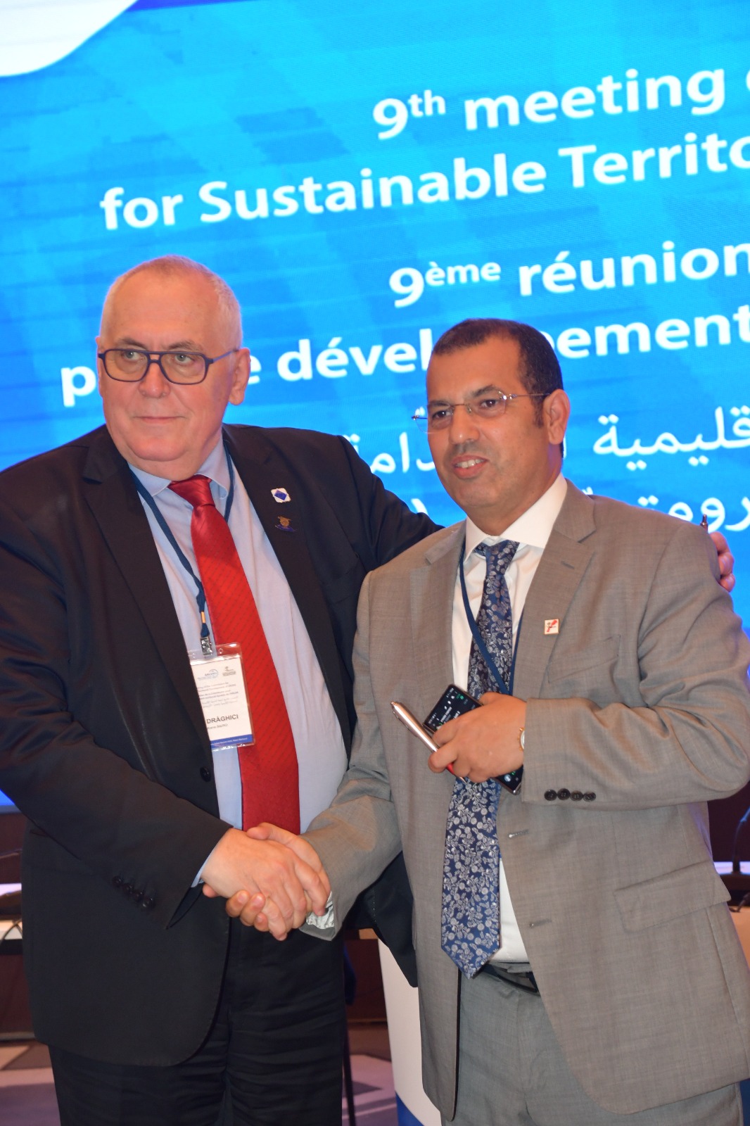على هامش الاجتماع التاسع للجنة التنمية الترابية المستدامة التابعة للجمعية الإقليمية والمحلية الأورو متوسطية المنظم بمدينة الرباط بشراكة مع الجمعية المغربية لرؤساء مجالس العمالات والأقاليم يوم الثلاثاء 25 أبريل 2023 وقع السيد عبد العزيز الدرويش، رئيس الجمعية المغربية لرؤساء مجالس العمالات والاقاليم والسيد إميل دراغيسي عمدة فولكانا باي ورئيس جمعية A.CO.R لبلديات دولة رومانيا، مذكرة تفاهم تروم ترسيم إطار مؤسساتي للتعاون بين الجانبين.