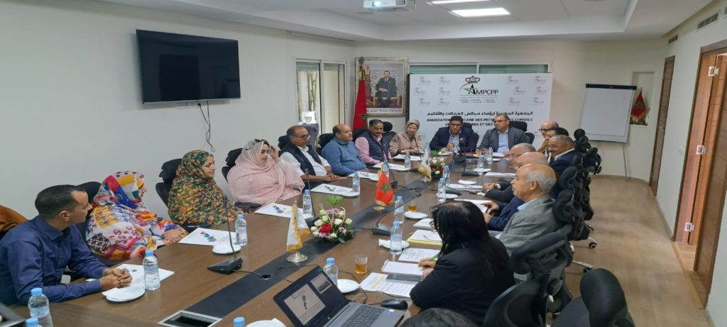 استقبل السيد عبد العزيز الدرويش رئيس الجمعية المغربية لرؤساء مجالس العمالات والأقاليم رفقة السيد نور الدين الأزرق والسيدة اعتماد الزهيدي نائبي الرئيس والسيد مسعود أوسار أمين مال الجمعية، يوم الأحد 9 نونبر 2025 بمقر الجمعية وفدا من أعضاء وأطر المجلس الإقليمي لوادي الذهب برئاسة السيد محمد سالم حمية رئيس المجلس .يأتي هذا اللقاء الأخوي في إطار التعريف بأنشطة الجمعية و أهدافها، كما شكل فرصة للتواصل وتقوية أواصر الأخوة والتعاون وتبادل الرؤى حول الأدوار التي تلعبها مجالس العمالات والأقاليم داخل منظومة اللامركزية ببلادنا، باعتبارها جماعات ترابية وسيطة خول لها المشرع أدوار مهمة في المجال الاجتماعي ومحاربة الفقر والهشاشة.خلال هذا اللقاء، تم استعراض أبرز أعمال المكتب التنفيذي للجمعية منذ توليه مهامه قبل أربع سنوات، سواء على مستوى الترافع أمام الجهات الحكومية لفائدة المجالس أو من خلال الأنشطة الوطنية و الدولية التي قامت بها الجمعية. و قد تزامن هذا اللقاء مع احتفالات الشعب المغربي بذكرى المسيرة الخضراء المظفرة، وكذا بالانتصارات الكبيرة التي حققتها بلادنا تحت القيادة الحكيمة والمتبصرة لصاحب الجلالة الملك محمد السادس نصره الله وأيده بخصوص قضية وحدتنا الترابية و التي توجت بصدور القرار الأخير لمجلس الأمن التابع للأمم المتحدة والذي تبنى فيه مقترح الحكم الذاتي تحت السيادة المغربية كحلٍ واقعي ونهائي للنزاع المفتعل حول الصحراء المغربية.