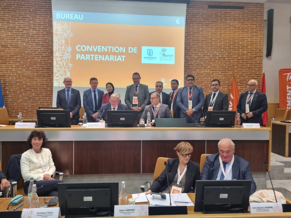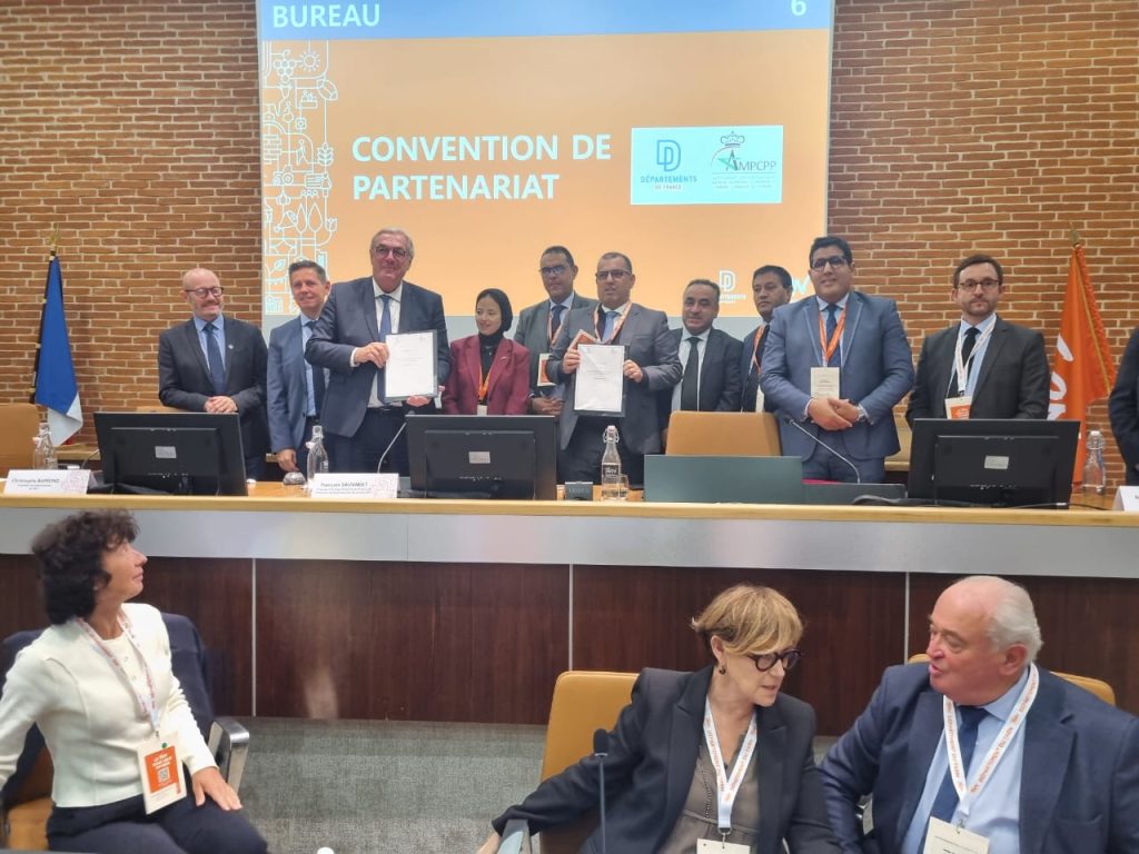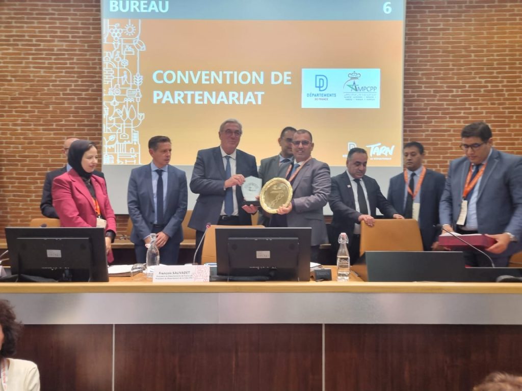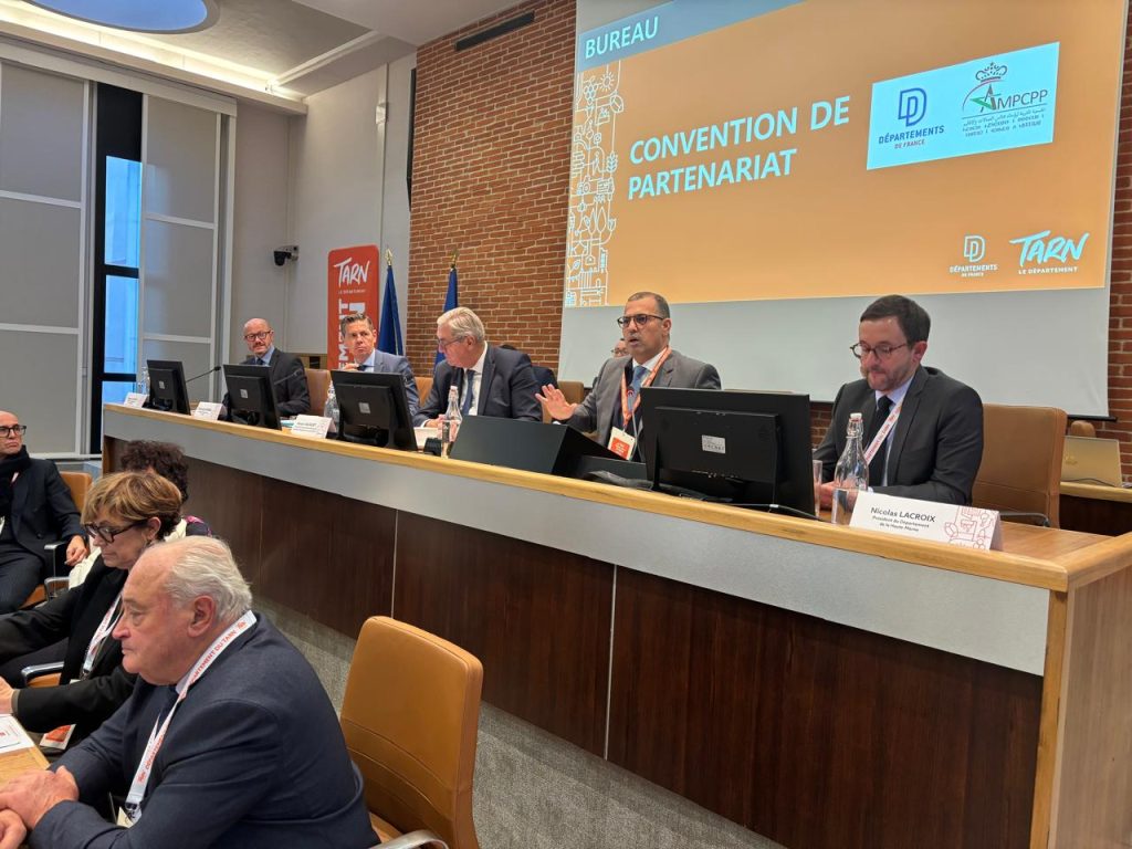 بدعوة رسمية من جمعية أقاليم فرنسا شارك وفد من الجمعية المغربية لرؤساء مجالس العمالات والأقاليم برئاسة السيد رئيس الجمعية وحضور أعضاء من مكتبها التنفيذي في منتدى نظمته الجمعية الفرنسية بمناسبة انعقاد جمعها العام وذلك خلال الفترة المتراوحة ما بين 12 و14 نونبر 2025 بمدينة “ألبي” التابعة لاقليم “طارن” الفرنسي. ويأتي هذا اللقاء في إطار علاقات التعاون التي تربط الجانبين والتي بدأت بالزيارة التي قام بها رئيس جمعية أقاليم فرنسا على رأس وفد هام شهر يونيو الماضي للمغرب والتي شملت مدن الرباط وسلا والصخيرات تمارة وطنجة حيث تم تدارس مسألة تطوير علاقات الشراكة والتعاون بين مجالس العمالات والأقاليم ونظيراتها الفرنسية في إطار الاختصاصات المخولة لهما وزيارة عدد من المرافق الاجتماعية. هذا وقد حضر أعضاء الوفد المغربي أشغال عدد من الورشات التي تضمنها برنامج المنتدى تناولت مواضيع متعددة منها:*الرقمنة والمجال الترابي: نحو عدالة ولوج حقيقية.*المسالك الطرقية و الحركية: التحديات والفرص للمجالات الترابية.*التشغيل والادماج : أية نماذج جديدة للتعاون.*ممتلكات الأقاليم: التدبير، التحسين، التعزيز.*الاستقلالية والشيخوخة: قضية مركزية للمجالات الترابية.هذا وقد توج لقاء وفد الجمعية مع مسؤولي الجمعية الفرنسية بتوقيع اتفاقية تعاون بين الجانبين تشمل تحديد مجالات العمل المشترك وتسهيل عقد شراكات بين المجالس المغربية والفرنسية لتنزيل مشاريع مشتركة لخدمة مصالح الساكنة. وبالمناسبة تم توجيه دعوة رسمية للجانب الفرنسي لعقد اللقاء المقبل بين الجانبين بمدينة الداخلة حيث ستكون مناسبة لاطلاع الجانب الفرنسي على الدينامية التنموية التي تعرفها مناطقنا الجنوبية.من جهة أخرى كانت للسيدة والسادة رؤساء المجالس أعضاء الوفد المغربي لقاءات ثنائية جانبية مع نظرائهم من الأقاليم الفرنسية حيث تم تعريف الجانب الفرنسي بأهداف الجمعية وكذا بتطور التجربة اللامركزية وبمجال الديمقراطية المحلية بالمملكة منذ الاستقلال إلى غاية دستور 2011 الذي أرسى معالمه مولانا صاحب الجلالة الملك محمد السادس نصره الله، وصدور القوانين التنظيمية لسنة 2015. كما تدارسوا سبل ربط علاقات تعاون لتبادل التجارب والخبرات في الميادين ذات الاهتمام المشترك ووفق الاختصاصات المنوطة بهذه المستويات الترابية.